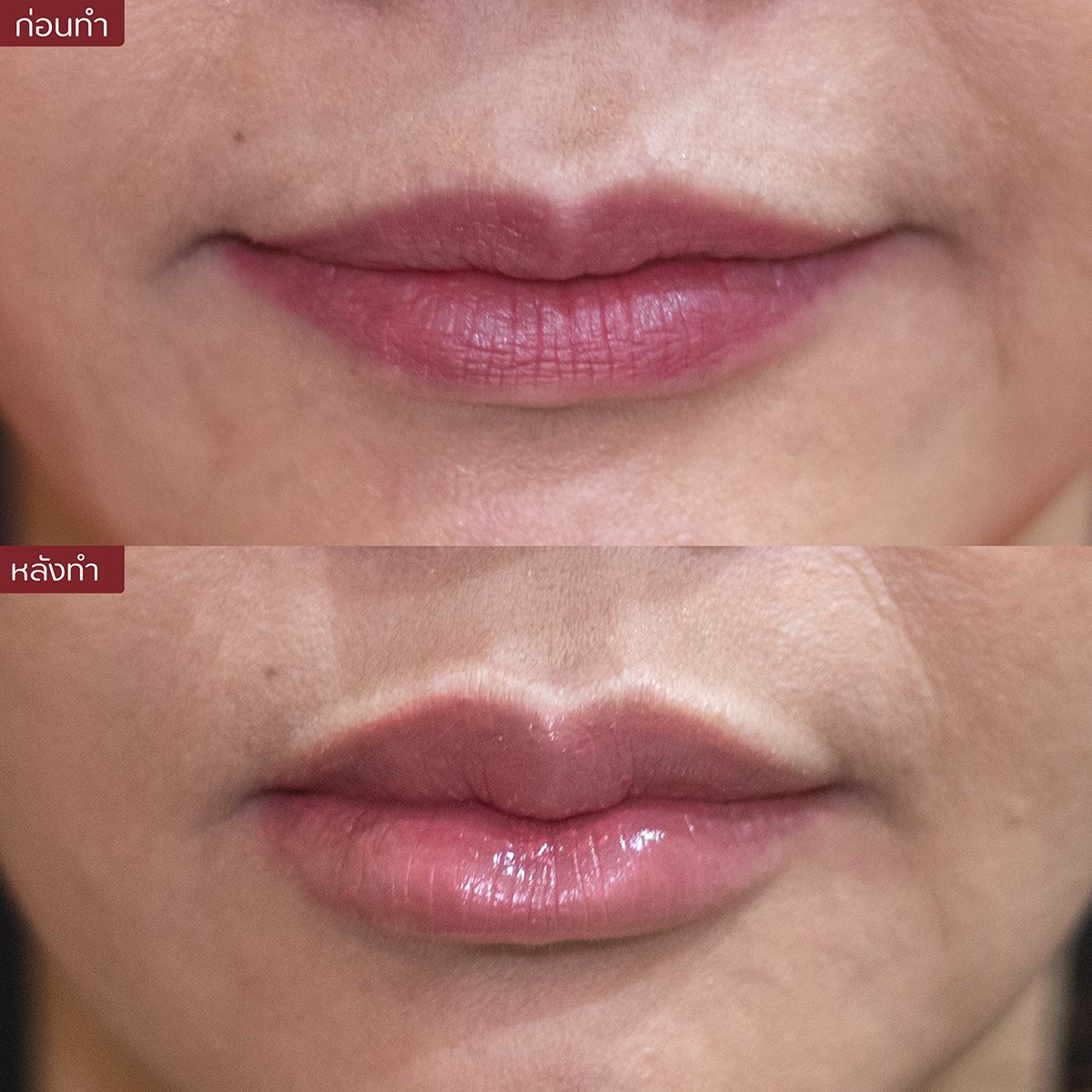 ○ ขอบรอยต่อระหว่างริมฝีปากกับผิวปกติ ต้องไม่มีริ้วรอย
