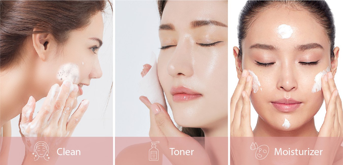 STEP 1 Clean ความสะอาดต้องมาอันดับ1 คลีนผิวให้หมดจด เป็นขั้นตอนสำคัญที่สุด ที่จะช่วยลดเชื้อแบคทีเรีย คราบเครื่องสำอางค์ ฝุ่นควันต่างๆ สาเหตุของปัญหาสิว และสีผิวไม่สม่ำเสมอบนใบหน้า