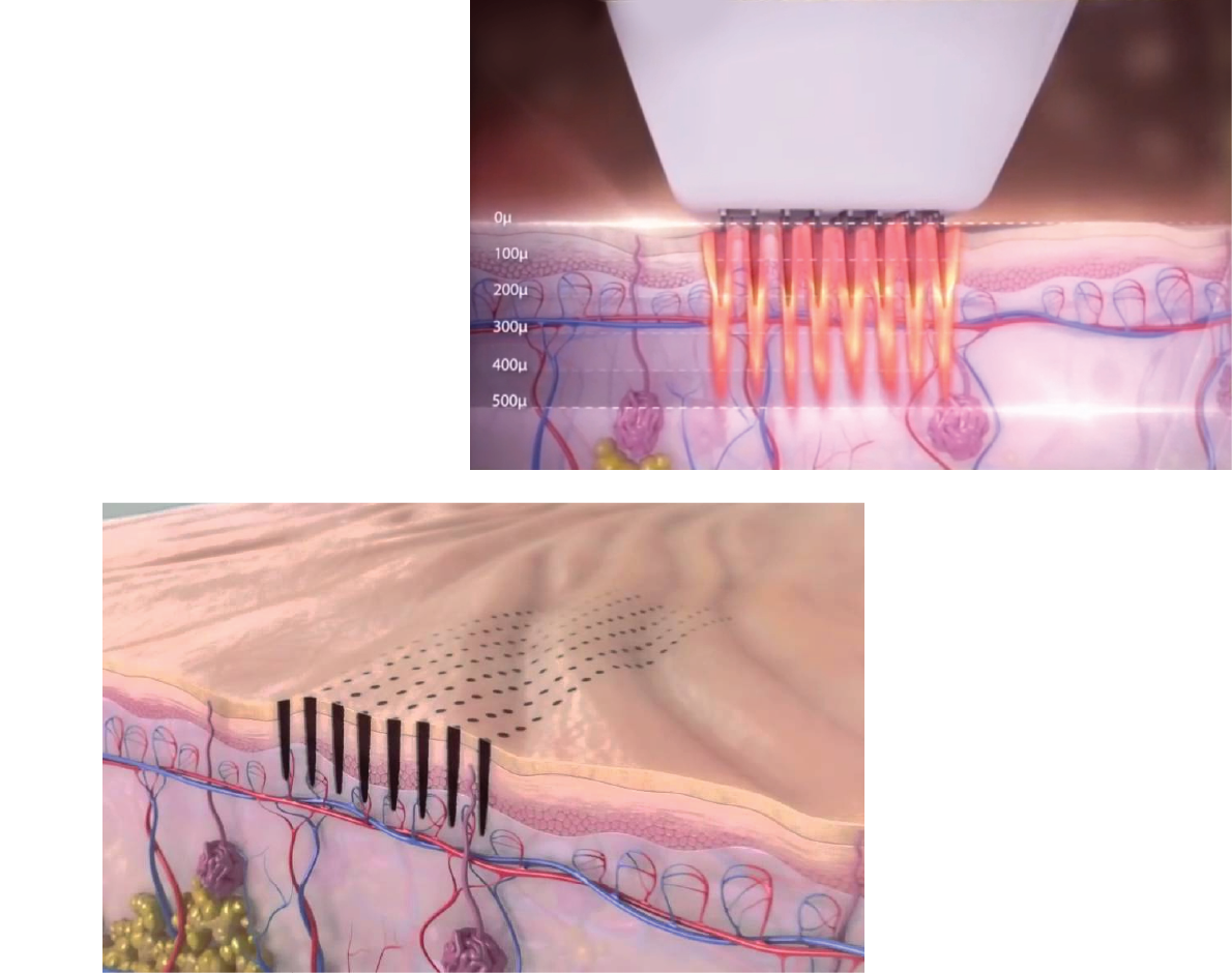 นวัตกรรม Venus Viva MD เทคโนโลยี Nano Fractional RF ทำงานโดยการปล่อยพลังงานคลื่นวิทยุลงไปยังเนื้อเยื่อใต้ผิว ผ่าน pin เล็กๆ ทำให้เกิดแผลบนผิวที่เล็กระดับไมครอน ไม่มีเลือดออก จึงมีระยะเวลาพักฟื้นผิวที่น้อยกว่าวิธีอื่นๆ ส่งผลให้การฟื้นฟูผิวเป็นไปได้อย่างมีประสิทธิภาพ ช่วยกระตุ้นการสร้าง collagen และกระตุ้นการจัดเรียงตัวใหม่ของเส้นใยคอลลาเจนให้ผสานกันอย่างแข็งแรง ทำให้รูขุมขนกระชับ หลุมสิวตื้นขึ้น ร่องริ้วรอยลดเลือนลง ผิวเรียบเนียน เงาใส และเต่งตึงขึ้น